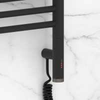 Да, у полотенцесушителя есть терморегулятор. Блок управления расположен справа.
