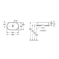 Раковина выполнена в размерах 56x36x14.5 см и имеет вес 13.5 кг. В комплекте идут крепления, а донный клапан приобретается отдельно. Установка осуществляется накладным способом, что облегчает монтаж.