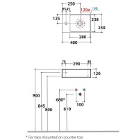 Обратите внимание, что донный клапан приобретается отдельно, а также имеется одно отверстие под смеситель для удобства установки. Диаметр слива составляет 4.5 см.