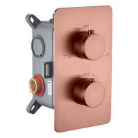 Встраиваемый смеситель для душа Boheme CELL 134-2-CB комплектуется термостатическим картриджем и предназначен для скрытого монтажа. Корпус из латуни с матовой медной поверхностью Copper Brushed. Встраиваемый элемент после завершения монтажа полностью скрыт. Управление рычажное, один потребитель. Размеры: высота 6,5 см, ширина 12 см, глубина 21 см. Страна производства — Турция. Гарантия 1 год.