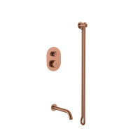 Смеситель Boheme TECH 154-CB предназначен для скрытого монтажа на два потребителя. Изготовлен из латуни, оснащён кнопочным управлением, матовая поверхность Copper Brushed. Комплект включает смеситель, встраиваемую часть, излив, держатель лейки и шланг. После монтажа встраиваемая часть полностью скрыта, на виду остаётся только управляющая панель.