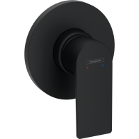 Hansgrohe Rebris E 72659670 — смеситель для душа с внутренним (скрытым) монтажом. После установки видимой частью остается только управляющий элемент. Корпус с матовой черной поверхностью, выполнен в современном стиле. Управление осуществляется однорычажным рычагом, механизм — керамический картридж. Необходима отдельная встраиваемая часть. Предназначен для монтажа в стену с 1 отверстием.