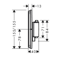 Термостатический смеситель Hansgrohe ShowerSelect Comfort Q 15583000 предназначен для душа, применяется при скрытом монтаже. Корпус выполнен из нержавеющей стали с глянцевым хромированным покрытием. Модель оснащена термостатическим картриджем, вентильным управлением и металлической ручкой в цвет изделия. Для установки требуется встраиваемая часть (заказывается отдельно). Основные характеристики: