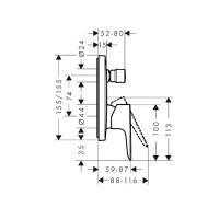 Смеситель Hansgrohe Talis E 71745140 предназначен для душа и монтируется скрытым способом. После установки видимой остаётся только внешняя панель и рычаг. Корпус выполнен в оттенке Brushed bronze с матовой поверхностью. Управление — однорычажное, механизм — керамический картридж. Цвет и материал ручки совпадают с основным корпусом. Встраиваемая часть приобретается отдельно.