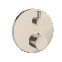 Термостатический смеситель Axor 38720820 предназначен для управления двумя контурами душа. Отличается скрытым способом монтажа — после установки видимы только элементы управления.