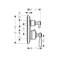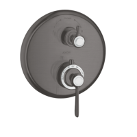 Термостатический смеситель Axor Montreux 16821340 предназначен для душа и рассчитан на подключение двух потребителей. Монтаж скрытый, элемент полностью утапливается в стену и видимы только управленческие элементы. Корпус матовый, цвет Brushed Black Chrome. Управление вентильное, механизм — термостатический картридж. Необходима отдельная встраиваемая часть.