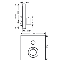 Смеситель Axor ShowerSelect арт. 36714340 предназначен для душа и оснащён термостатическим картриджем для стабильного поддержания температуры воды. Монтаж осуществляется внутренне с использованием скрытой части (заказывается отдельно), после установки элементы управления остаются видимы. Корпус и ручка выполнены из металла в цвете Brushed Black Chrome с матовой отделкой. Управление вентильное, рассчитан на одного потребителя. Гарантия 5 лет.
