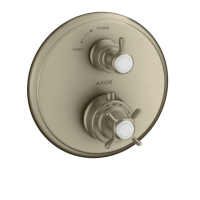 Axor Montreux 16800820 — встраиваемый термостатический смеситель для душа, выполненный в цвете Brushed Nickel. Устройство комплектуется термостатическим картриджем, обеспечивает стабильную температуру подачи воды и оснащён вентильным управлением. Предусмотрен скрытый монтаж, после установки элемент не виден. Для работы требуется встраиваемая часть (заказывается отдельно). Комплект рассчитан для одного потребителя, монтаж производится в одно отверстие. Материал ручек — металл, поверхность смесителя матовая.