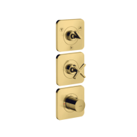 Смеситель Axor Axor Citterio E 36704990 с термостатическим картриджем, предназначен для скрытого монтажа в душевых системах. Управление осуществляется вентильными рукоятками из металла в цвете Polished Gold. Устройство рассчитано на три потребителя, оснащено глянцевой поверхностью и требует встраиваемой части (заказывается отдельно). Корпус и элементы скрыты после установки, видимой остаётся только лицевая панель и элементы управления.