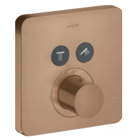 Смеситель Axor 36707310 предназначен для скрытого монтажа в душевых системах на 2 потребителя. Обладает термостатическим механизмом для поддержания стабильной температуры воды. Корпус и ручки выполнены из металла с матовой поверхностью цвета золото красное брашированное/шлифованное. Для работы необходимо заказать отдельную встраиваемую часть, после монтажа основной элемент полностью скрыт в стене. Управление вентилями обеспечивает надежность и плавность переключения. Соответствует современному стилю и рассчитан на один монтажный проем.