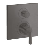 Термостатический смеситель Axor Citterio 39720340 предназначен для душевых систем с двумя независимыми потребителями. Встраиваемая конструкция обеспечивает скрытый монтаж — после установки видимыми остаются только элементы управления. Механизм — термостатический картридж, гарантирующий точную настройку температуры и стабильное смешивание воды. Корпус и ручки выполнены из металла с матовой поверхностью цвета Brushed Black Chrome. Требует отдельного заказа встраиваемой части.