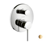 Смеситель для душа Axor Starck 10416990 предназначен для управления двумя потребителями. Встраиваемая часть после монтажа скрыта в стене, что обеспечивает лаконичный внешний вид. Корпус и рычаг – из металла с глянцевым покрытием Gold, Polished Gold. Керамический картридж гарантирует долговечность механизма. Монтаж – скрытый, необходимо отдельно заказать встраиваемую часть.