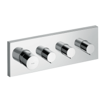 Смеситель Axor Showersolutions 10751000 предназначен для душа с тремя независимыми потребителями, оборудован термостатическим картриджем для стабильного поддержания температуры воды. Конструкция рассчитана на внутренний (скрытый) монтаж с последующей невидимостью встраиваемых элементов. Внешние элементы выполнены из нержавеющей стали с глянцевой поверхностью. Управление осуществляется металлическими вентилями, монтаж — на 4 отверстия. Необходима встраиваемая часть (приобретается отдельно).