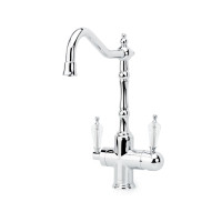Кухонный смеситель Boheme TRADIZIONALE 113-SW с краном под фильтр изготовлен из латуни и оснащён глянцевым хромированным покрытием. Монтаж осуществляется на столешницу. Двойной канал обеспечивает подачу фильтрованной и обычной воды через отдельные трубки. Удобное рычажное управление гарантирует точную настройку напора и температуры. Классический дизайн подходит для большинства интерьеров кухни.
