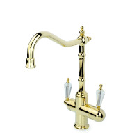 Смеситель Boheme 112-SW TRADIZIONALE предназначен для монтажа на столешницу кухни. Корпус выполнен из латуни с глянцевым золотым покрытием. Модель оснащена отдельным краном для подачи отфильтрованной воды. Управление — рычажное, стиль — классический. Размеры: высота 35,3 см, ширина 5,5 см, глубина 23,1 см. Производство — Турция. Гарантия 5 лет.
