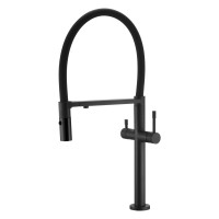 Однорычажный смеситель Boheme Uno 115-B предназначен для кухни и оснащён отдельным краном для фильтрованной воды. Монтируется на столешницу, совмещает функции подачи обычной и питьевой воды. Корпус выполнен из современных материалов с чёрным глянцевым покрытием.