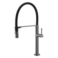 Смеситель Boheme Uno 114-SGM предназначен для кухни. Монтируется на столешницу, оснащён гибким изливом для удобства эксплуатации. Изготовлен в современном стиле с глянцевым покрытием цвета Shine Gun Metall. Корпус выполнен из устойчивых материалов, обеспечен гарантийный срок — 5 лет. Основные характеристики: