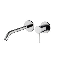 Настенный смеситель Fima Carlo Frattini Spillo Up (артикул F3051WLX8OS) с изливом длиной 20,8 см, монтаж скрытый. Корпус и ручка из латуни, матовая поверхность цвета Brushed Gold. Для управления используется керамический картридж с одним рычагом.