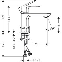 Смеситель Hansgrohe Rebris S 72514000 для раковины, высота корпуса — 14,3 см, длина излива — 12,1 см. Корпус и рычаг выполнены из латуни с хромированной глянцевой поверхностью. Механизм — керамический картридж, управление однорычажное. Монтаж осуществляется на одно отверстие с помощью гибкой подводки с резьбой 3/8". Донный клапан комплектом не поставляется, заказывается отдельно.