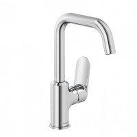 Смеситель Kludi X1 320280575 предназначен для установки на раковину. Корпус выполнен из латуни, поверхность глянцевая, цвет хром. Высота смесителя — 27.5 см, длина излива — 15.5 см. Механизм — керамический картридж, подводка гибкая 3/8". Установка в одно отверстие. Ручка — латунь, покрытие в цвет корпуса. Донный клапан приобретается отдельно.