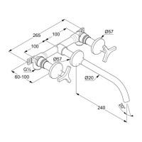 Смеситель для раковины Kludi Nova Fonte Deco (артикул 201460539) предназначен для скрытого монтажа, после установки все элементы коммуникаций находятся вне поля зрения. Излив длиной 24 см фиксированный, корпус и ручки выполнены из латуни с глянцевой хромированной поверхностью. Управление вентильное, монтаж на три отверстия, жесткая подводка 1/2". Керамическая кран-букса обеспечивает надежное перекрытие воды. Донный клапан приобретается отдельно. Комплект поставки включает встроенную часть для монтажа в стену.