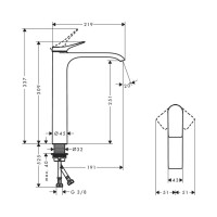 Смеситель Hansgrohe Vivenis 75042700 предназначен для установки на раковину. Высота корпуса 30,9 см позволяет использовать модель с глубокими раковинами. Корпус и рукоятка выполнены из латуни, покрытие – матовый белый (Matt White, Bianco Opaco). Управление осуществляется одним рычагом, установлен керамический картридж для точной регулировки температуры и напора. Подключение – гибкая подводка 3/8”, излив фиксированный, длина 19,1 см.