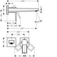 Смеситель Hansgrohe Metropol 74526000 предусмотрен для внутреннего (скрытого) монтажа на раковину и монтируется с помощью встраиваемой части (не входит в комплект). Длина излива — 22,5 см, материал — латунь с глянцевой хромированной поверхностью. Управление осуществляется рычагом, механизм — керамический картридж. Подключение — 1/2", монтаж в два отверстия. Донный клапан и встраиваемая часть приобретаются отдельно.