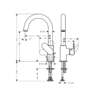 Смеситель Hansgrohe Vernis Blend 71554000 устанавливается на раковину через одно отверстие. Высота корпуса — 31,6 см, длина излива — 16,6 см. Материал исполнения — латунь с глянцевым хромированным покрытием. Механизм — долговечный керамический картридж. Подключение к воде осуществляется с помощью гибкой подводки 3/8". Управление — однорычажное. Оснащён поворотным изливом и донным клапаном. Современный стиль исполнения и гарантия производителя 5 лет.