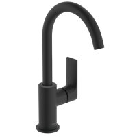 Смеситель Hansgrohe Rebris E 72576670 предназначен для монтажа на раковину. Высота корпуса — 30,1 см, длина излива — 15,4 см. Оборудован керамическим картриджем, поворотным изливом, гибкой подводкой 3/8", донным клапаном. Изготовлен из латуни с матовой чёрной поверхностью (Matt Black, Nero Opaco).