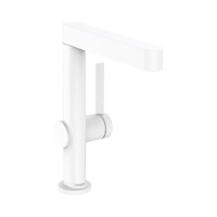 Смеситель Hansgrohe Finoris 76060700 монтируется на раковину, оснащён керамическим картриджем и гибкой подводкой 3/8". Изготовлен из латуни, поверхность матовая белая (Matt White, Bianco Opaco), высота 24.8 см, длина поворотного излива 17.8 см. Управление осуществляется рычагом в цвет корпуса. Современный дизайн, в комплекте донный клапан.