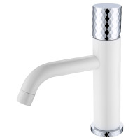 Смеситель Boheme Stick DIAMOND 121-WCR предназначен для установки на раковину. Корпус выполнен из латуни с глянцевым белым покрытием, переключение воды осуществляется рычажной хромированной ручкой DIAMOND. Высота изделия — 20,1 см, глубина излива — 16 см, ширина корпуса — 4,5 см. Монтаж осуществляется непосредственно на раковину, необходимый донный клапан заказывается отдельно. Гарантия производителя — 5 лет. Модель выполнена в современном стиле и подходит для большинства раковин.