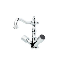 Смеситель Boheme 272-Royal/CRST black предназначен для установки на раковину. Корпус выполнен из латуни с глянцевым хромированным покрытием. Конструкция имеет вентильное управление, относится к стандартному размеру. Габариты изделия: высота — 20,9 см, ширина — 15,2 см, глубина — 21 см. Для комплектации донный клапан необходимо заказывать отдельно. Страна производства — Турция. Гарантия — 5 лет.