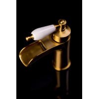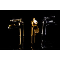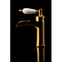 Смеситель Boheme Vogue 211 предназначен для установки на раковину. Изготовлен из латуни с глянцевым золотым покрытием. Современный стиль исполнения и рычажное управление обеспечивают простоту эксплуатации. Высота изделия — 16,4 см, ширина — 5 см, глубина — 13,5 см. Гарантия — 5 лет. Донный клапан приобретается отдельно.