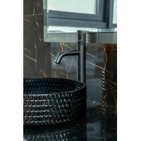 Высокий смеситель Boheme Stick 122-B-MR-B разработан для установки на раковину. Корпус выполнен из латуни с глянцевым черным покрытием. Конструкция оснащена рычажным управлением, рукоятка изготовлена из мрамора. Размеры: высота 33,1 см, ширина 4,5 см, глубина 16 см. Донный клапан заказывается отдельно. Гарантия производителя — 1 год. Страна изготовления — Турция.