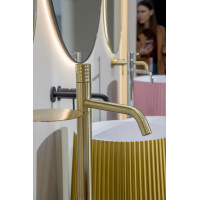 Смеситель Boheme Stick DIAMOND 120-MG предназначен для напольного монтажа к раковине. Выполнен из латуни с матовым золотым покрытием. Комплектуется золотой ручкой DIAMOND. Для подключения требуется установка встраиваемой части, после монтажа скрыта от глаз и обеспечивает лаконичный внешний вид. Гарантия 5 лет.