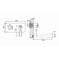 Смеситель Boheme Venturo 375-SGM для раковины комплектуется встраиваемой частью и предназначен для скрытого монтажа на 2 отверстия. Корпус из латуни с глянцевым покрытием в цвете Shine Gun Metall. Современный дизайн, размеры: высота 10 см, ширина 22 см, глубина 19 см. В комплекте скрытая часть, после монтажа внешние элементы минимальны. Донный клапан приобретается отдельно. Гарантия производителя — 5 лет.