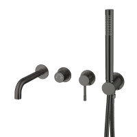 Смеситель Boheme Uno 464-3-GM предназначен для скрытого монтажа в ванных комнатах. Комплект включает встраиваемую часть, которая остается спрятанной после установки. Корпус изготовлен из латуни с глянцевым покрытием Gun Metall. Размеры: ширина 29 см, глубина 25 см. Обеспечивает надёжность и простой доступ к управлению. Гарантия — 5 лет.