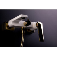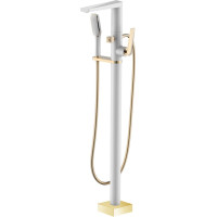 Boheme Venturo 389-W — напольный смеситель для ванны современного стиля, выполненный из латуни с глянцевым белым покрытием и золотыми ручками. Высота конструкции — 101 см; ширина — 20,6 см; глубина — 29,3 см. Монтаж напольный, в комплект входит встраиваемая часть, которая будет скрыта после установки. Производство — Турция. Гарантия — 5 лет.