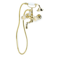 Смеситель Boheme Crystal 293-CRST предназначен для ванны и крепится на стену. Изготовлен из латуни с глянцевым золотым покрытием, высота конструкции — 27,3 см, ширина и глубина — 21,5 см. Комплект относится к классическому стилю, подходит для монтажа в современных и традиционных ванных комнатах. Гарантия производителя — 5 лет. Произведён в Турции.