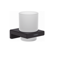 Стакан Hansgrohe AddStoris 41749670 выполнен из матового стекла с подвесным монтажом на металлический держатель с покрытием Matt Black (Nero Opaco). Габариты: высота 9,4 см, ширина 8,1 см, глубина 9,1 см. Для хранения зубных щеток и принадлежностей, монтаж настенный. В комплект входят держатель и стакан. Современный стиль, подходит для ванной комнаты. Страна производства — Германия, гарантия 5 лет.