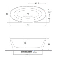Ванна Treesse Alma V015BO выполнена из искусственного камня с матовой поверхностью (Matt White, Bianco Opaco). Габариты: 1750x800x550 мм. Овальная форма, объём 255 литров. Современный дизайн, установка отдельно стоящая. В комплекте предусмотрен слив-перелив. Панель интегрирована. Модель без противоскользящего покрытия. Производство — Италия.