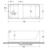 Ванна Treesse Cross V396BO — отдельностоящая модель из искусственного камня длиной 160 см и глубиной 73 см. Прямоугольная форма, современный стиль. Матовая поверхность в цвете Matt White (Bianco Opaco). Слив-перелив включён в комплект. Объём ванны 320 литров. Высота конструкции — 60 см. Ванна оснащена панелью, противоскользящее покрытие отсутствует. Производство — Италия.