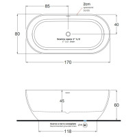 Отдельностоящая ванна Treesse Clivia V447BO подходит для современных интерьеров. Изготовлена из искусственного камня, обладает матовой белой поверхностью (Matt White, Bianco Opaco). Размеры — длина 170 см, ширина 80 см, высота 60 см. Объем — 355 л. В комплекте идет слив-перелив, панель установлена. Ванна не имеет противоскользящего покрытия. Страна производства — Италия.