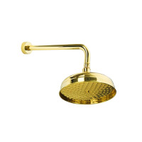 Верхний душ Boheme Imperiale 411 предназначен для настенного монтажа. Круглая лейка диаметром 20 см изготовлена из латуни с глянцевым покрытием в цвете Gold. Кронштейн входит в комплект поставки. Душ выполнен в классическом стиле и рассчитан на один режим подачи воды. Подходит для современных душевых решений, имеет гарантию 5 лет.