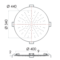 Верхний душ потолочный Remer Rubinetterie с диаметром 44 см выполнен в современном черном матовом стиле и из высококачественной нержавеющей стали. Этот душ не только стильный, но и функциональный, предлагая один режим работы для ваших ежедневных нужд.