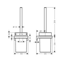 Настенный ёршик для унитаза Hansgrohe AddStoris 41752140 оснащён матовой колбой из сатинированного стекла и металлическим держателем в отделке 'brushed bronze'. Предусмотрен для монтажа на стену. Габариты: высота — 34,2 см, ширина — 10,5 см, глубина — 12 см. Современный стиль исполнения. Изделие произведено в Германии, гарантия — 5 лет.