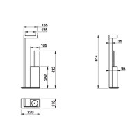 Ёршик-стойка Gessi Rettangolo 20934#031 предназначен для напольной установки и подходит для современной ванной комнаты. Имеет хромированный металлический держатель и керамическую колбу черного цвета. Высота составляет 61,4 см, ширина — 22 см, глубина — 11 см, вес — 8,565 кг. Изделие произведено в Италии, входит в коллекцию Rettangolo, предоставляется гарантия 10 лет.